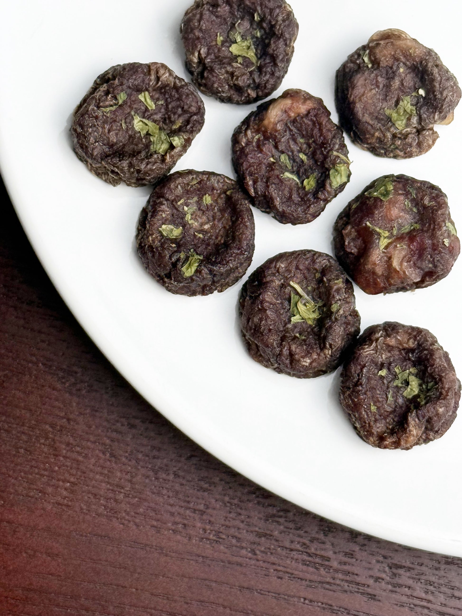 These bite-sized treats are made with 100% beef knuckle, gently dehydrated to lock in flavor and nutrients, and topped with a dash of parsley for a fresh, digestive-friendly boost.