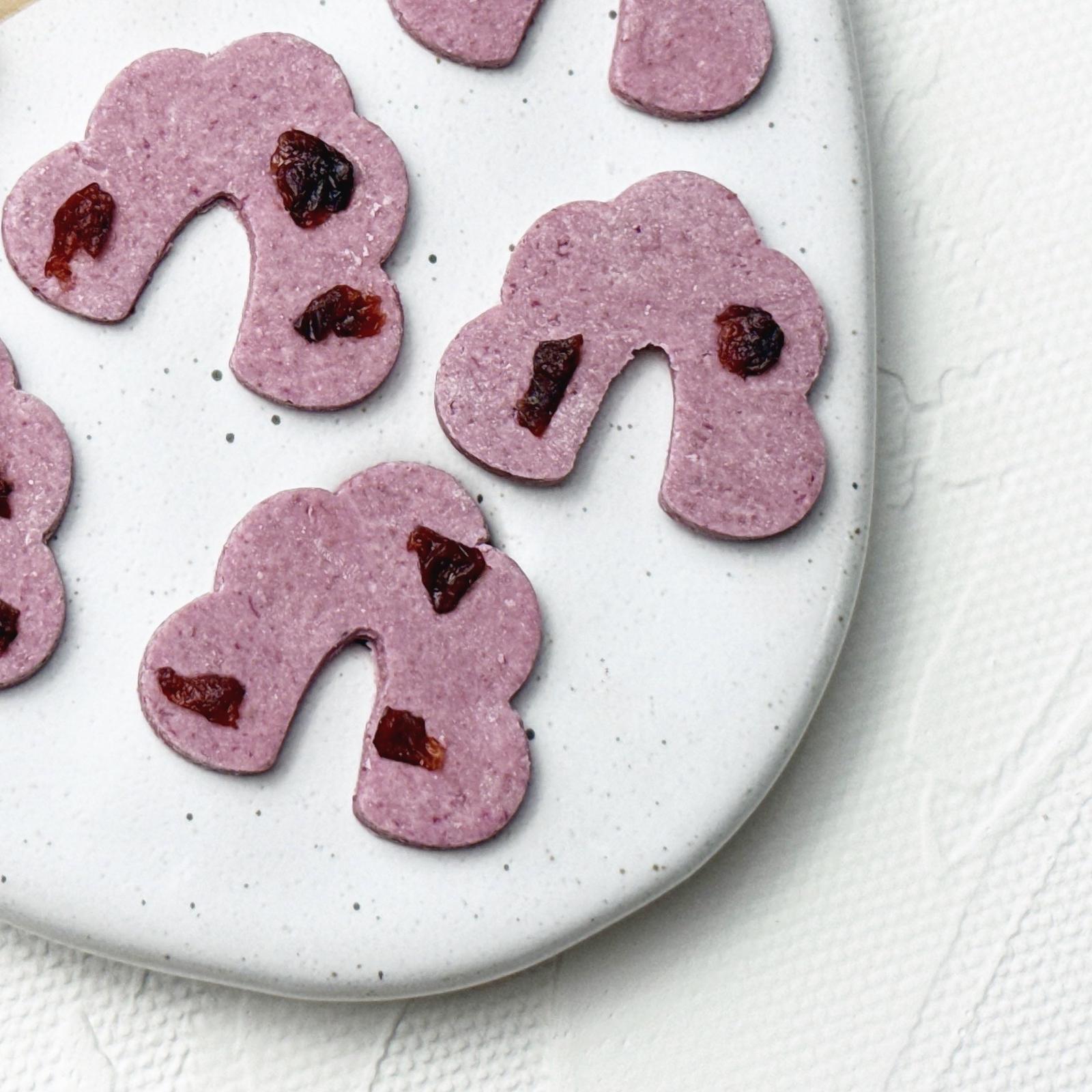 Bursting with berry goodness and shaped like cheerful paws, Pawberry Crunch is a fruity, antioxidant-rich biscuit your pets will love. Made with goat milk for easy digestion, organic cranberry and blueberry powders for urinary health and immunity, and topped with real dried cranberries for extra flavor and texture.